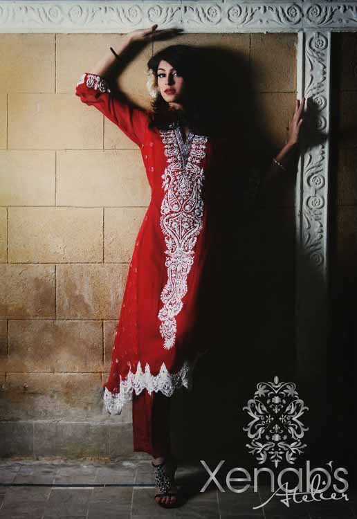 Most renown and most effective work of Xenab’s Atelier are "Xenab's Atelier Bridal dresses", but casual and party wear dresses are also having a unique existance in the market. Xenab’s Atelier is a very well-known fashion home was found in year 2008 by Xenab Ansari. Here we have some fabulous evening party wear dresses designed by the Xenab's Atelier. The dress designing for this collection 2012 has involved high class designs topped with the fancy work of embroidery and use of accessory. Long kurti and frocks are in fashion now days and this collection will gives you a better and affordable choice on these two fabulous cultural dresses. The great thing is a use of colors in a fresh and elegant way of styling and printing.